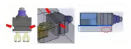 “通過卡槽定位裝配”D2GW開關與客戶部件裝配時,開關本體的卡槽作為定位并可卡入,裝配十分簡易。并且和其他通過定位柱或定位孔安裝的產品相比,通過卡槽與客戶部件裝配,可以使客戶的部件設計更加小巧。