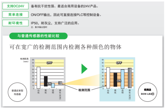歐姆龍限定反射傳感器,不易受顏色和材質(zhì)影響的限定反射型鏡面、黑色、透明物體也都會檢測出來,支持DC24V的設(shè)備內(nèi)置用。不受背景及物體的顏色影響,切實檢測希望檢測的物體。