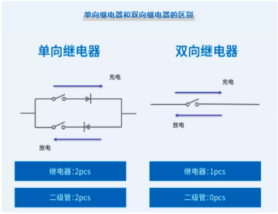正反極性皆可使用,適用于充電、放電的應(yīng)用,和普通單向開關(guān)的繼電器相比,不僅通過節(jié)省部件數(shù)量讓電路設(shè)計更緊湊,還能節(jié)約成本。