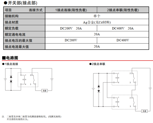 3、可實現(xiàn)無極性的DC200V 20A開閉,通過產(chǎn)品的2接點串聯(lián)可實現(xiàn)DC400V 20A開閉,串聯(lián)連接已取得UL/TUV/CQC認證,安全可靠;