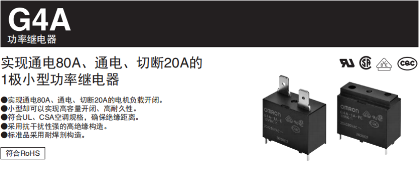 G4A是一款極小型功率繼電器,小型卻可以實(shí)現(xiàn)高容量開閉,高耐久性,有接線片端子和印刷基板用端子可選擇,穩(wěn)定的性能也足夠小尺寸為產(chǎn)品開發(fā)預(yù)留足夠的空間。