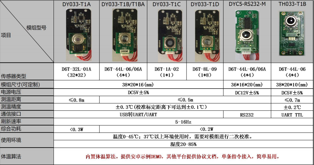我們同時也可以給您提供一整套的測溫解決方案!我們可以根據客戶測溫需求,搭載1*1,1*8, 4*4,32*32歐姆龍測溫傳感器,實現檢測距離0.3-0.8米測溫,測溫精度可以達到±0.3℃(校準標定距離下可達到±0.1℃)。也可以滿足客戶的多種串口通訊方式(1)USB轉UART/UART;(2) RS232 ;(3) UART TTL。模塊資料如下: