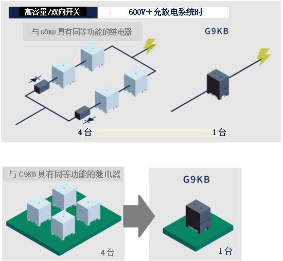 ● 在高電壓600V的系統(tǒng)上,可通過1臺繼電器實(shí)現(xiàn)充放電時直流電流的開關(guān)控制和安全阻斷。