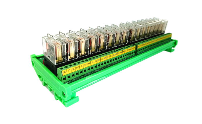 該模組搭載低功耗線圈技術,僅需 24V DC 驅動即可實現 16A 大電流負載的精準控制,線圈功率僅為 0.4W,相比傳統繼電器節能 30% 以上。其觸點采用銀合金材料,接觸電阻低至 100mΩ 以下,可減少電能損耗,延長設備使用壽命。同時,模組支持高頻次開關動作,機械壽命達 12000 萬次,大幅降低維護成本,為企業長期穩定運行提供保障。