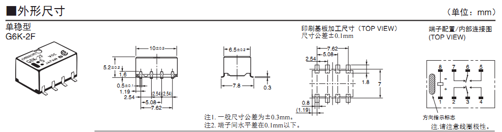 高5.2mm×寬6.5mm×長10mm的超小型,對應(yīng)高密度封裝(G6K(U)-2F(-Y)型)。
