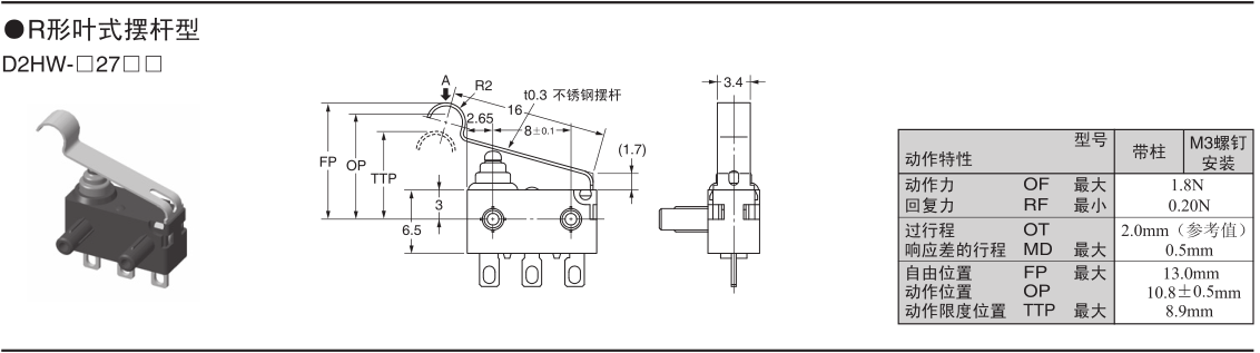 歐姆龍微動開關(guān),D2HW-C271H,歐姆龍微動開關(guān)D2HW