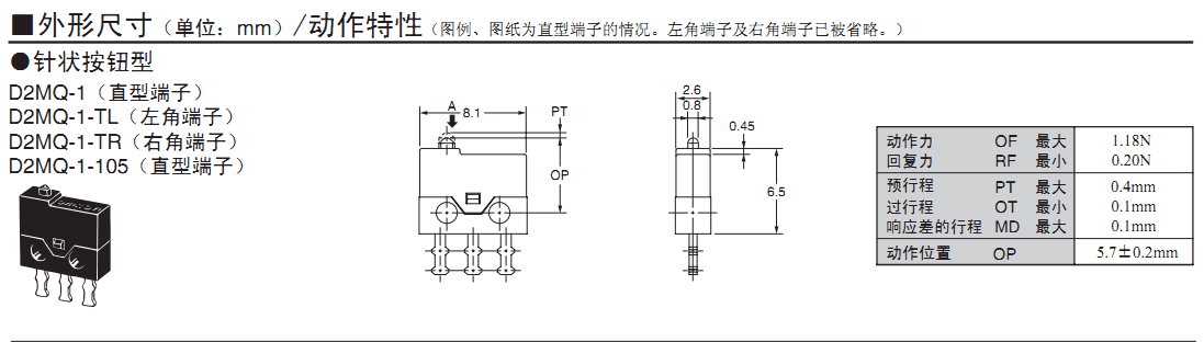 歐姆龍微動開關,D2MQ-1,歐姆龍微動開關D2MQ