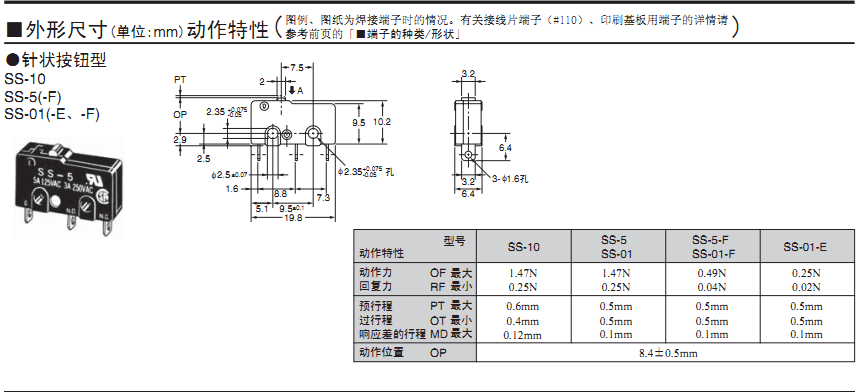 歐姆龍微動開關,SS-01-F,歐姆龍微動開關SS