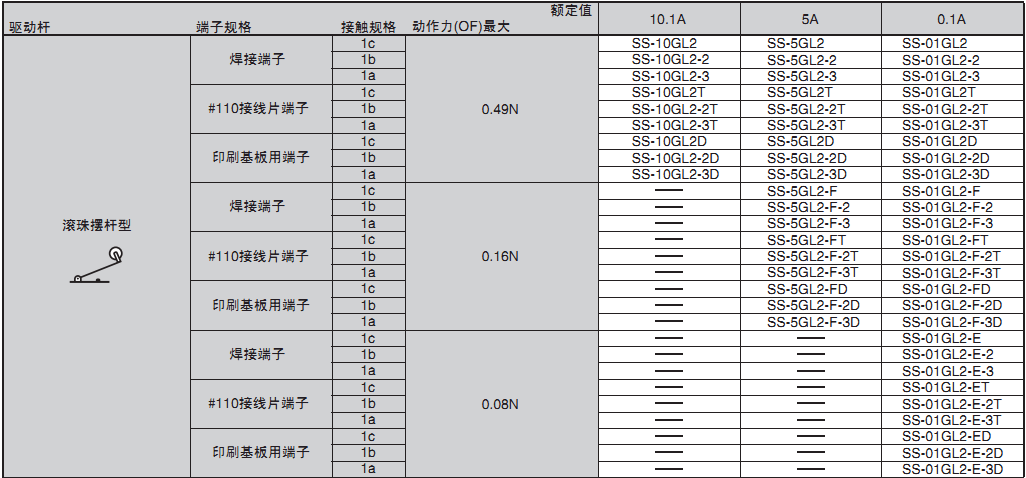 ? 備有0.1A~10.1A型的各個品種,產(chǎn)品規(guī)格齊全,是歐姆龍暢銷的開關。