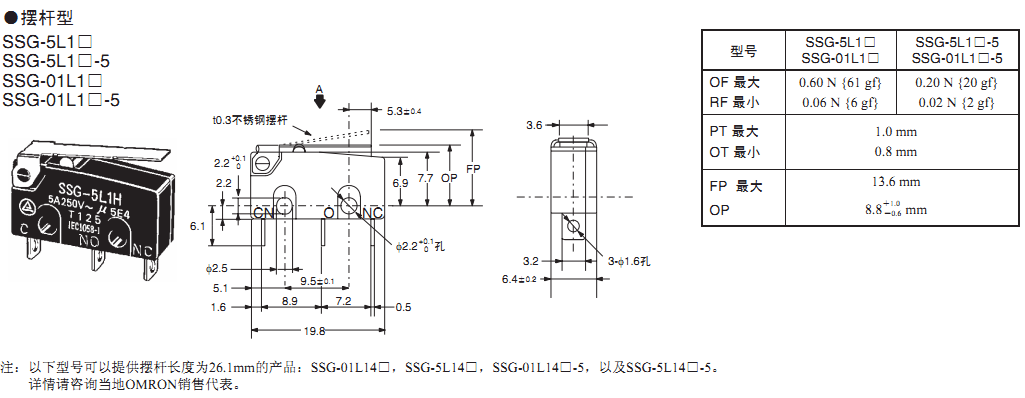 歐姆龍微動開關(guān),SS-5L1P,歐姆龍微動開關(guān)SS