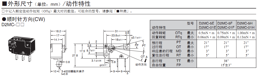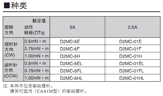 高可靠性、輕轉矩 (0.5mN·m )的旋轉動作基本開關