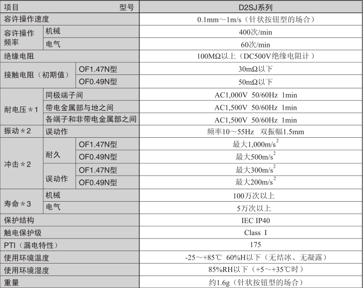 D2SJ小型基本開關