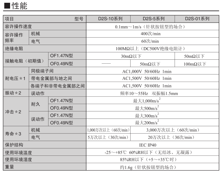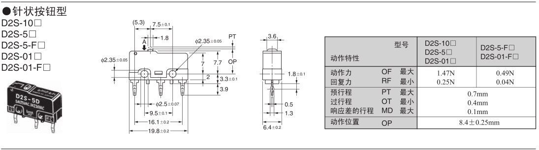 歐姆龍微動開關, D2S-10,歐姆龍微動開關D2S