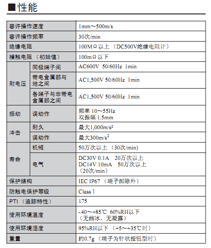 高可靠性和耐環境性兼備的長行程密封型開關
