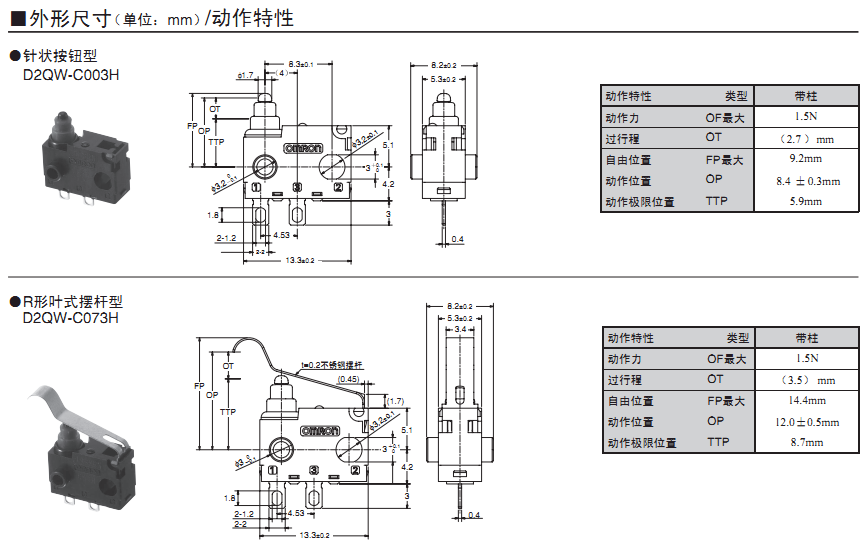 歐姆龍微動開關,D2QW-C003H,歐姆龍微動開關D2QW