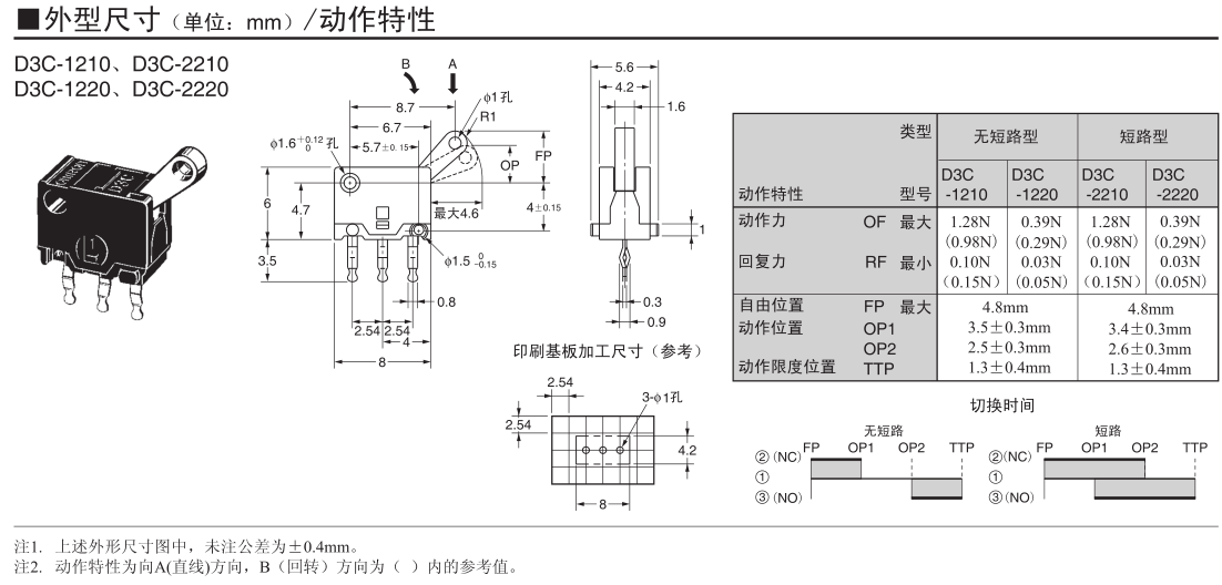 歐姆龍檢測開關,D3C-1210,歐姆龍檢測開關D3C