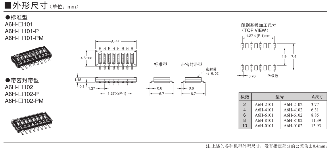 歐姆龍DIP開關, A6H-2101,歐姆龍DIP開關A6H