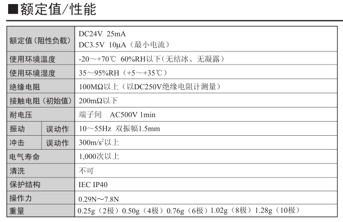 接點部分為鍍金雙接點,通過動作的自清潔構造,確保了高可靠性。
