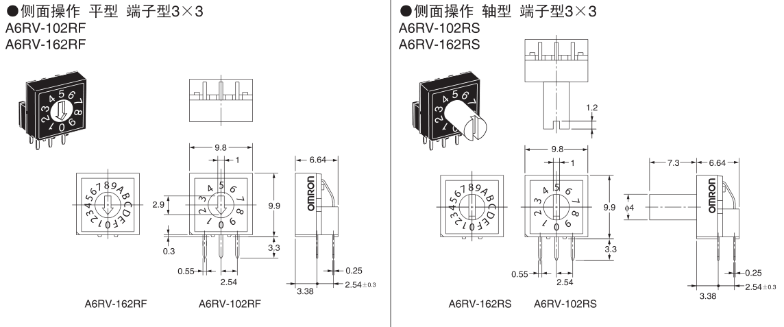 •  A6R-102RS旋轉DIP開關
