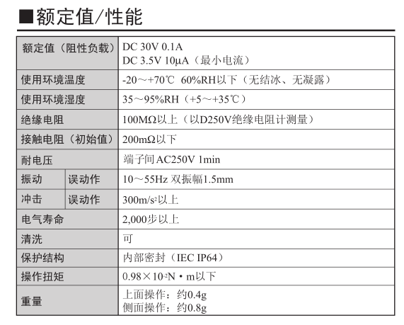 基座部插入成形,轉動部分通過O環相當于密封構造IP64(IEC-60529)防止焊劑浸入,即使在塵埃較多或有水的地方使用也能確保高接觸可靠性。