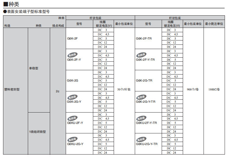 高5.2mm×寬6.5mm×長10mm的超小型,對應高密度封裝(G6K(U)-2F(-Y)型)。