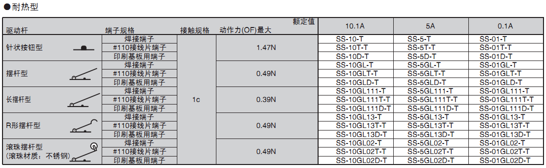 備有0.1A~10.1A型的各個(gè)品種,產(chǎn)品規(guī)格齊全,是歐姆龍暢銷的微動(dòng)開(kāi)關(guān)。