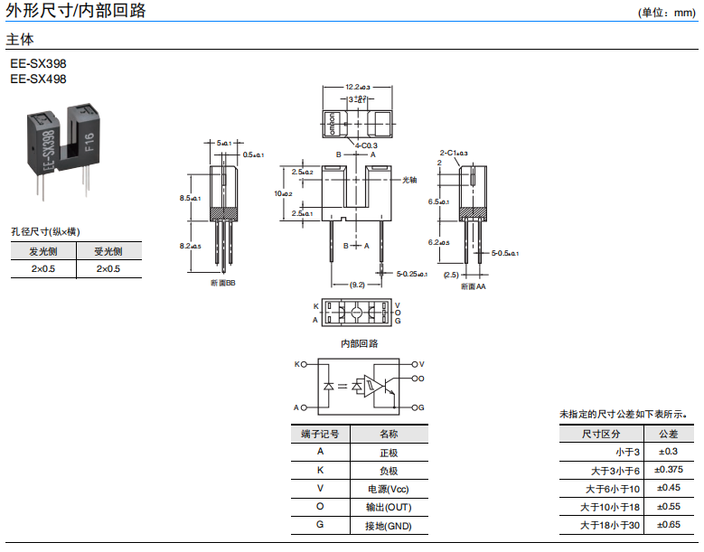 EE-SX398/EE-SX498 微型光電傳感器(透過(guò)型)