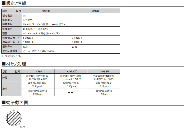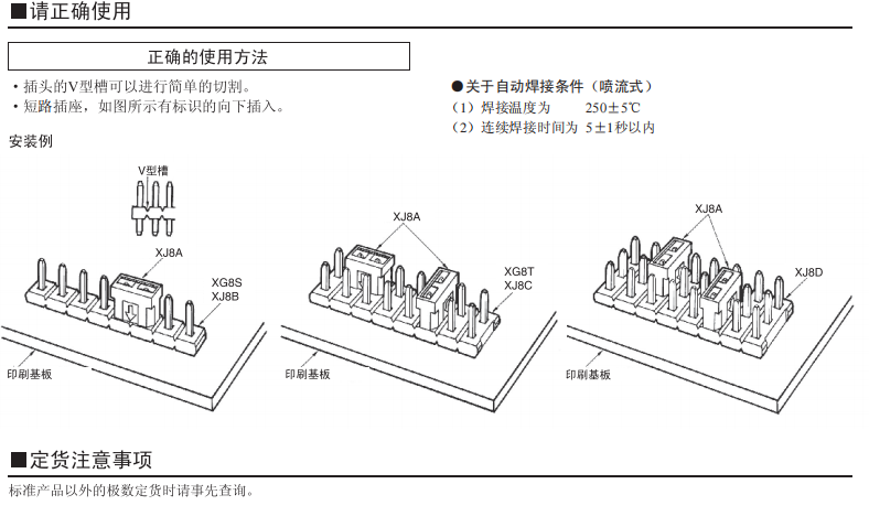 薄型的插頭支架(XJ8)采用了有高耐熱的PPS樹脂材料。