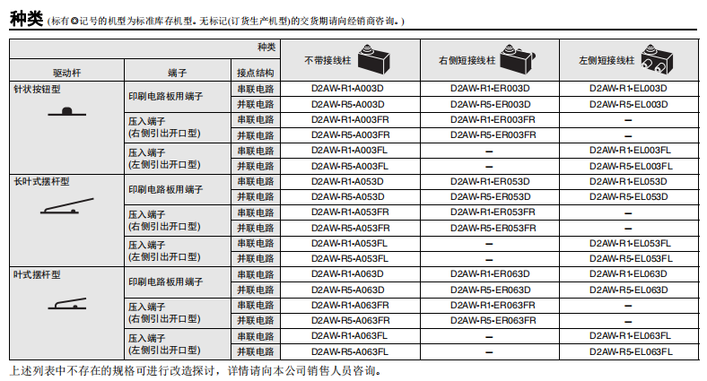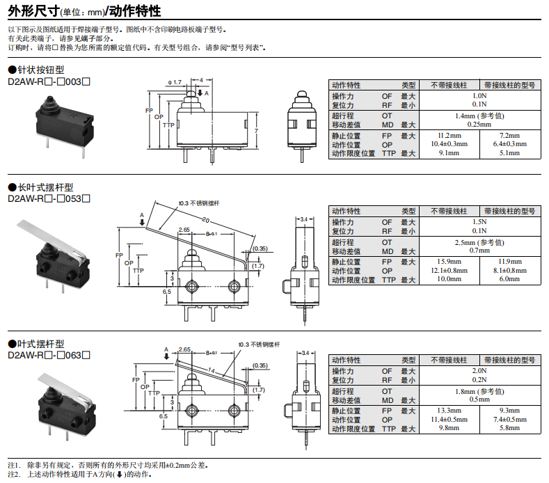 即使無擺桿也便于使用的長行程規格 (OT參考值:1.4mm)