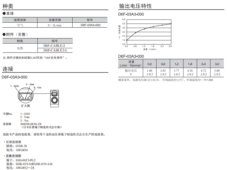 D6F-A3小型流量傳感器0~3L/min